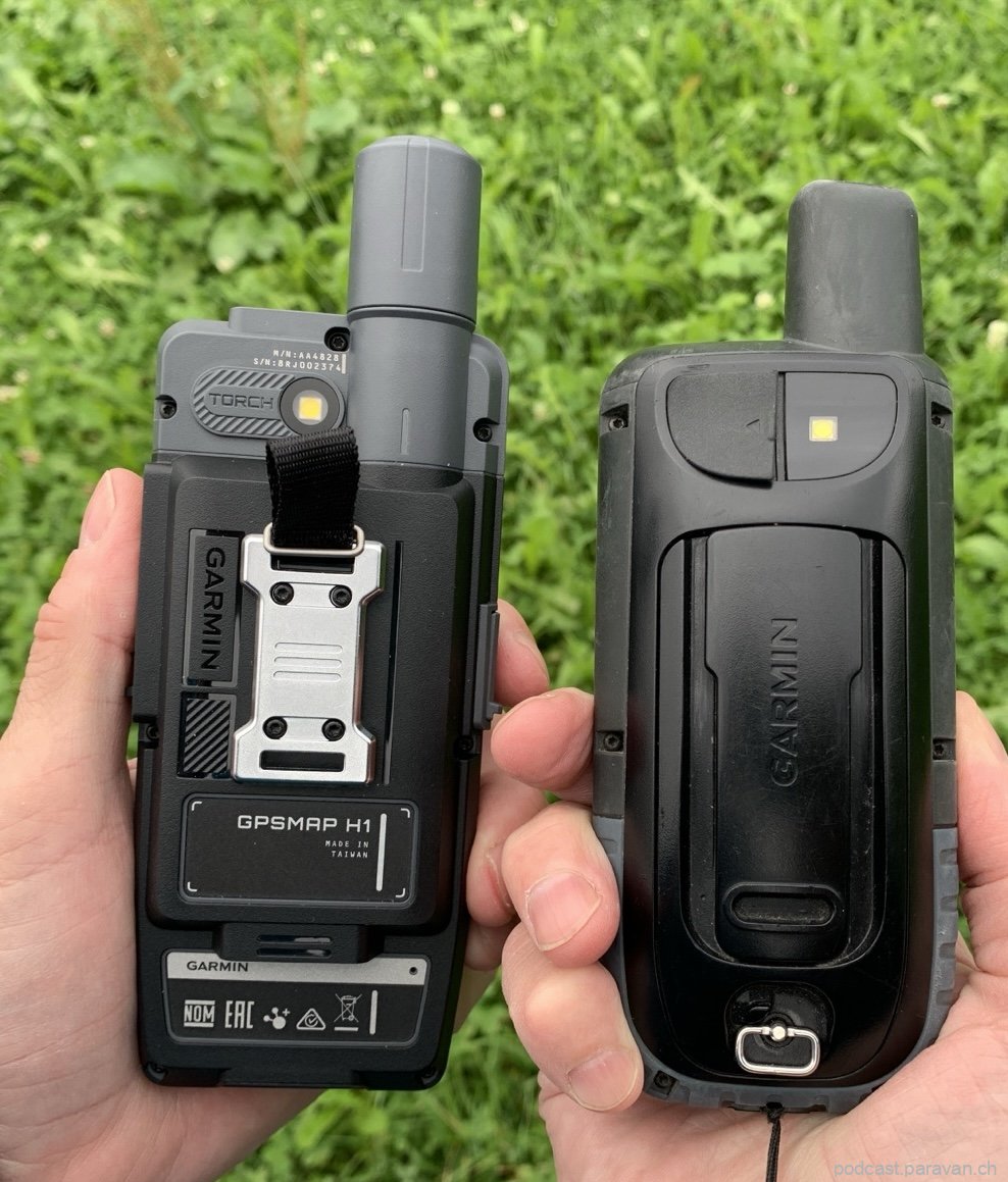 Vom H1 gibt es zwei Modelle: Das H1 und das H1Plus. Der Unterschied ist, dass letzteres noch „inReach“ besitzt, d.h. die Möglichkeit, weltweit über Satelliten Nachrichten versenden zu können. Auch verfügt das H1Plus zusätzlich über zwei Kameras, eine hinten und eine vorne am Gerät (für Selfies). Das H1Plus ist an seiner roten Antenne gut zu erkennen. Ich benutze hier ein H1, da ich für meine Outdoor-Aktivitäten und Geocaching inReach nicht benötige.