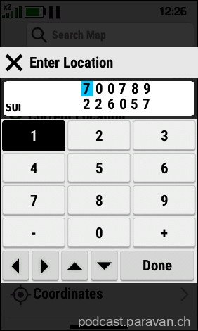 So steht z.B. das Schweizer Koordinatensystem „Swiss Grid LV95“ nicht zur Auswahl. Das ist das neue mit 14 Ziffern. Das ältere LVS03 (12 Ziffern) gibt es. Von Garmin wurde mir bereits bestätigt, dass dies vergessen wurde und an die Entwicklung weitergemeldet wurde.